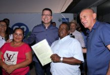 Em agenda com governador Marcos Rocha, Ezequiel Neiva entrega títulos urbanos à população de...