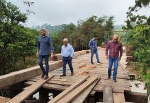 Em Machadinho D’ Oeste, deputado Ezequiel Neiva inspeciona construção de ponte de madeira sobre...